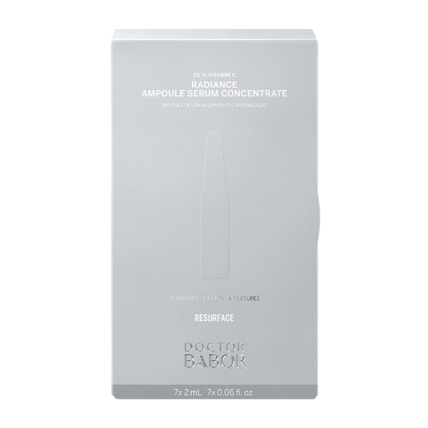 Dr Babor Radiance Ampoules är ett 7-pack ampullkit som ger huden en kraftfull lysterboost. Ampullerna innehåller 20% stabilt C-vitamin som stödjer hudens egna kollagen. I kombination med återfuktande hyaluronsyra och utjämnande linolensyra hjälper de huden att synbart minska fina linjer, rynkor och ojämn hudstruktur vid regelbunden användning. Astaxantin förstärker C-vitaminets antioxidant-effekt, skyddar huden mot yttre påfrestningar och ger en ljusare, klarare och slätare hud. Resultatet är en hud med jämnare ton, förbättrad lyster och förnyad spänst. Radiance Ampoules är perfekt för hud med pigmenteringar som behöver extra energi.