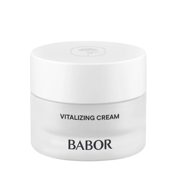 Babor Vitalizing Cream är en energigivande 24-timmarskräm specifikt framtagen för trött, gråglåmig hud som snabbt ger ny kraft. Produkten innehåller ATP, algin och papayaextrakt som kickar igång hudens cellförnylese och väcker en trött hud. Med en fuktgivande formula boostas hudens fuktnivåer och stram hud blir mjuk igen. Babor Vitalizing Cream ger huden lyster och förbättrar hudens ton. Dessutom skyddar den huden mot skadligt blått ljus och stärker elasticiteten och skyddar mot oxidativ stress.