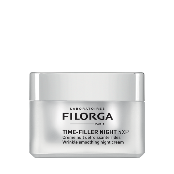 Filorga Time-Filler Night 5XP är en nattkräm som hjälper till att minska synligheten av fem olika typer av rynkor, såsom bekymmersrynkor, skrattrynkor, nasolabialveck och sovrynkor. Formulan kombinerar tripeptider, hyaluronsyra och växtextrakt som arbetar medan du sover för att återfukta, mjuka upp och förbättra hudens elasticitet och struktur. Resultatet blir en jämnare, mer ungdomlig hud med minskad synlighet av rynkor och en boost av antioxidanter som skyddar huden under natten. Time-Filler Night 5XP har en lätt och behaglig textur och passar alla hudtyper.