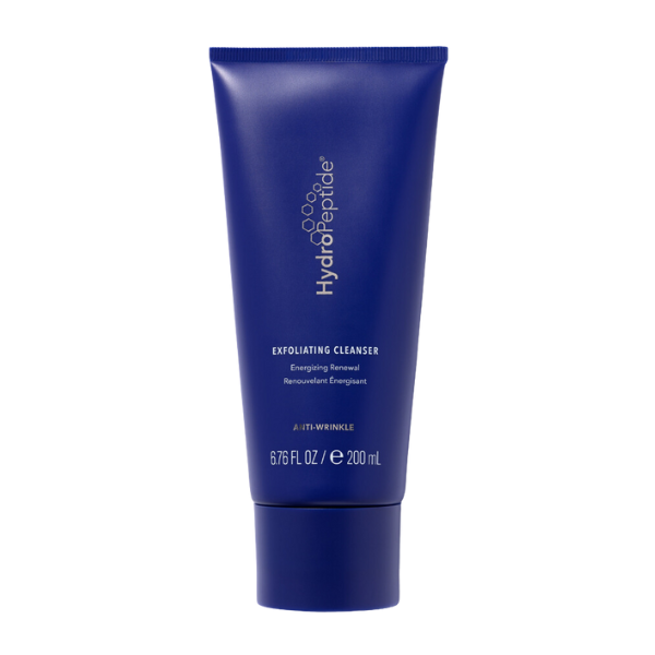 HydroPeptide Exfoliating Cleanser är en löddrande rengöring som passar alla hudtyper. Rengöringen lämnar huden mjuk och len, utan att torka ut. Med en formula som innehåller Peptider och växtextrakt som är rika på antioxidanter, så skyddas huden mot yttre påfrestning och kollagenproduktionen sätts igång. Exfoliating Cleanser innehåller Glykolsyra som sätter igång hudens cellförnyelse, avägsnar döda hudceller och ge huden en jämn och fin lyster. Produkten peelar även huden mekansikt med små jojoba-pärlor som smälter i kontakt med huden. Denna rengöring passar därför extra bra till dig med linjer, rynkor, pigmenteringar och orenheter i huden.