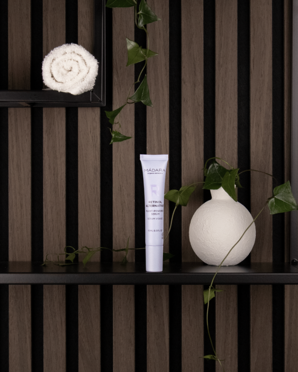 Ett växtbaserat anti-ageserum med 4% växtbaserat retinolalternativ baserat på Björkvatten och Bidens Pilosa, som effektivt bekämpar ålderstecken på samma sätt som syntetisk retinol, men utan att orsaka irritation eller torrhet. Detta serum stimulerar kollagenproduktionen, vilket hjälper till att återställa hudens spänst och fasthet, samtidigt som det reducerar fina linjer.