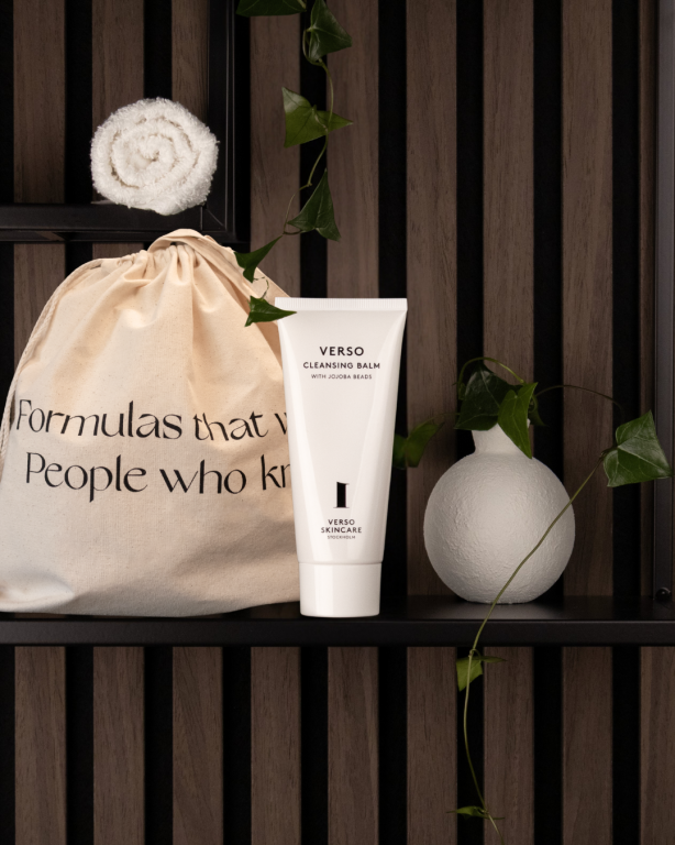 Verso Cleansing Balm är en närande balmrengöring för alla hudtyper, men passar speciellt bra till en torr och känslig hud. Denna balm har lugnande och mjukgörande egenskapar, men exfolierar även huden lätt tack vare små jojobapärlor som smälter i kontakt med huden. Applicera Cleansing Balm på torr hud och massera runt samtidigt som du känner hur makeup. smuts och spf bara smälter bort.